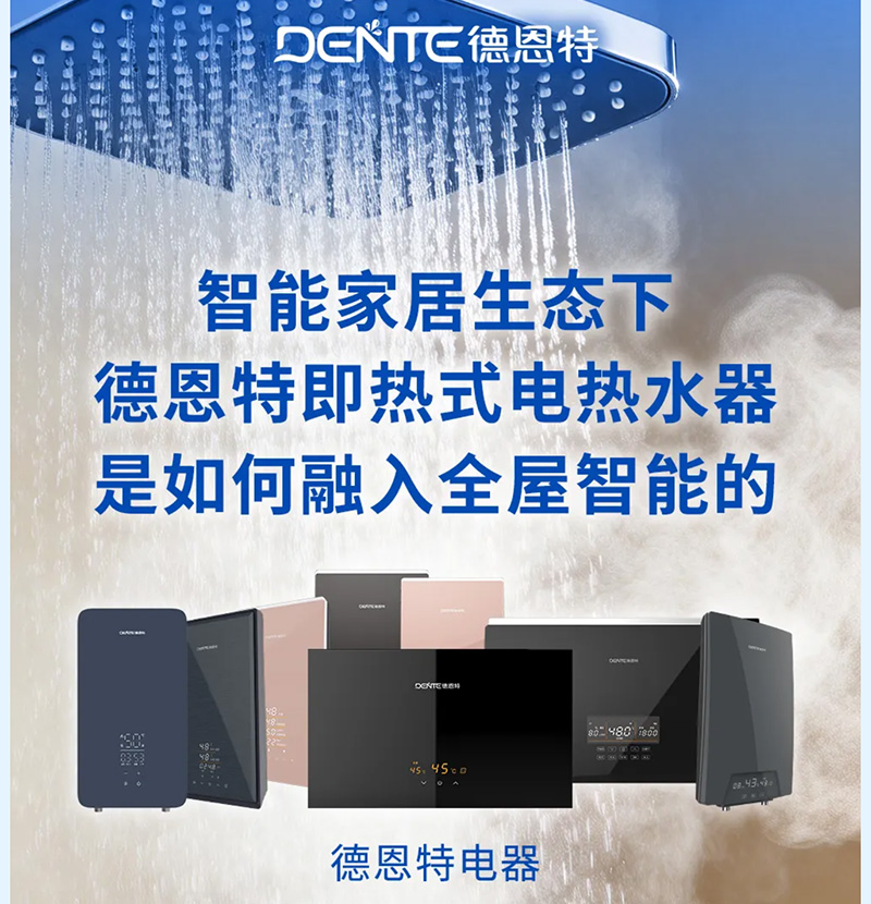 當(dāng)智能家居從概念走向普及,作為家庭高頻使用的核心設(shè)備,電熱水器已不僅是熱水供應(yīng)源,更是全屋智能生態(tài)的重要一環(huán)。德恩特,作為快熱式電熱水器國家標(biāo)準(zhǔn)起草單位,憑借全維度的智能設(shè)計(jì),讓熱水器真正成為懂你的智慧伙伴。