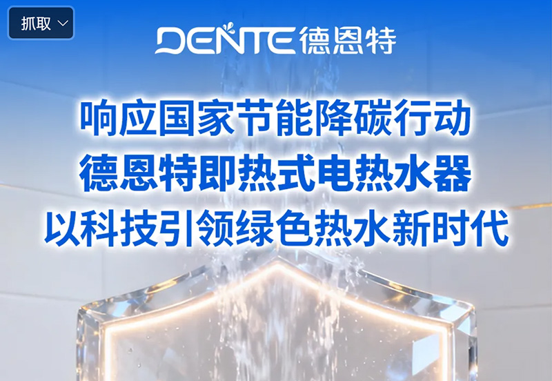 國務(wù)院印發(fā)《2024—2025年節(jié)能降碳行動(dòng)方案》(國發(fā)〔2024〕12號(hào)),明確提出要加快重點(diǎn)用能設(shè)備能效提升,推動(dòng)綠色消費(fèi)與低碳生活方式的普及。作為家庭日常能源消耗的重要設(shè)備,電熱水器的能效水平直接影響全社會(huì)節(jié)能減排的成效。在政策引導(dǎo)與市場需求的雙重驅(qū)動(dòng)下,傳統(tǒng)儲(chǔ)水式電熱水器因待機(jī)保溫能耗高、熱效率低等問題,正面臨全面升級(jí)的挑戰(zhàn)。 德恩特即熱式電熱水器憑借前瞻性的技術(shù)布局與系統(tǒng)化的產(chǎn)品設(shè)計(jì),精準(zhǔn)契合國家綠色發(fā)展戰(zhàn)略,成為推動(dòng)行業(yè)低碳轉(zhuǎn)型的重要力量,助力“雙碳”目標(biāo)在民生領(lǐng)域的落地實(shí)踐。