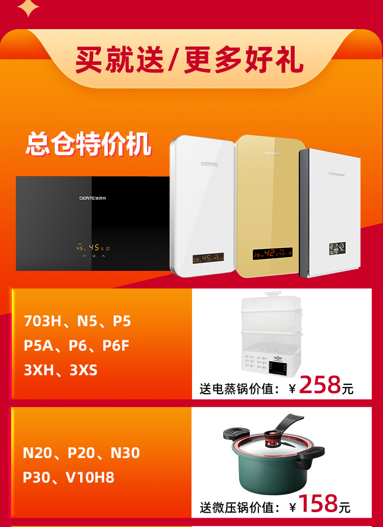 德恩特品牌旗下涵蓋即熱式電熱水器,速熱式電熱水器,快熱式電熱水器品牌和凈水機等