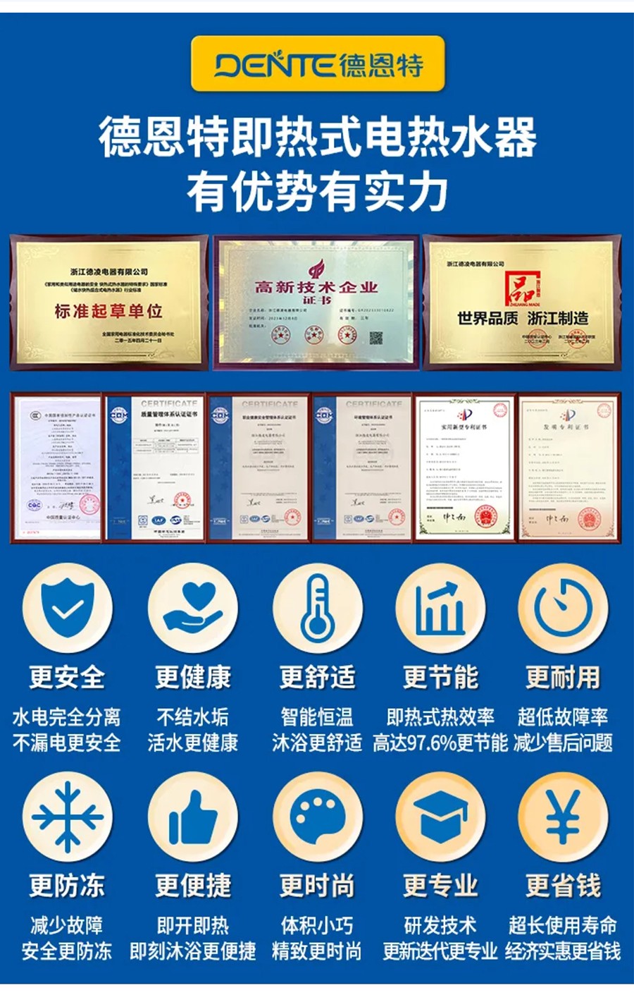德恩特品牌旗下涵蓋即熱式電熱水器,速熱式電熱水器,快熱式電熱水器品牌和凈水機(jī)等