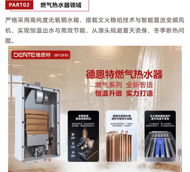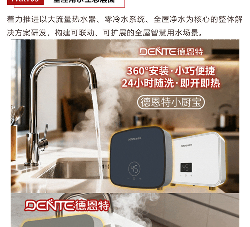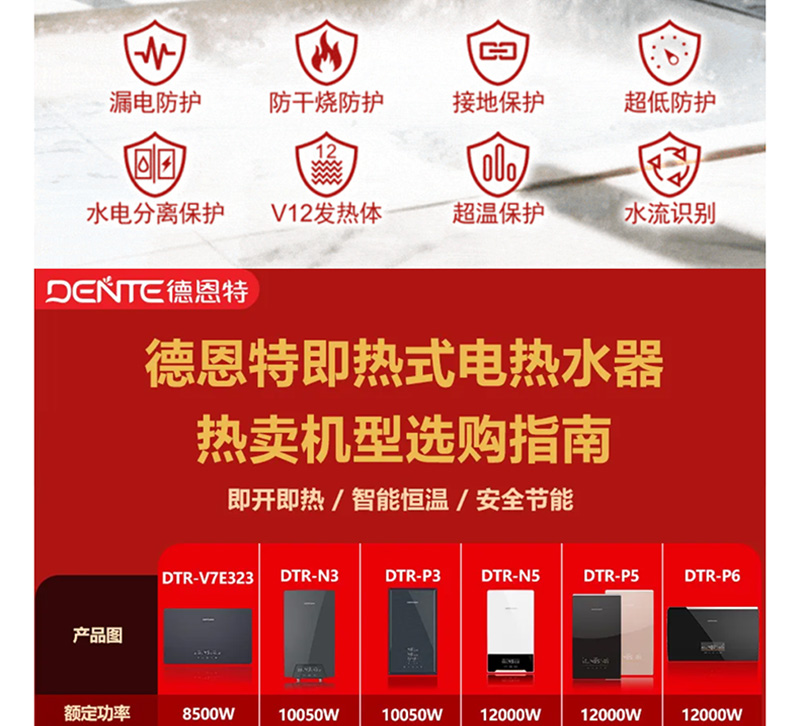 德恩特品牌旗下涵蓋即熱式電熱水器,速熱式電熱水器,快熱式電熱水器品牌和凈水機等